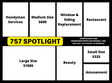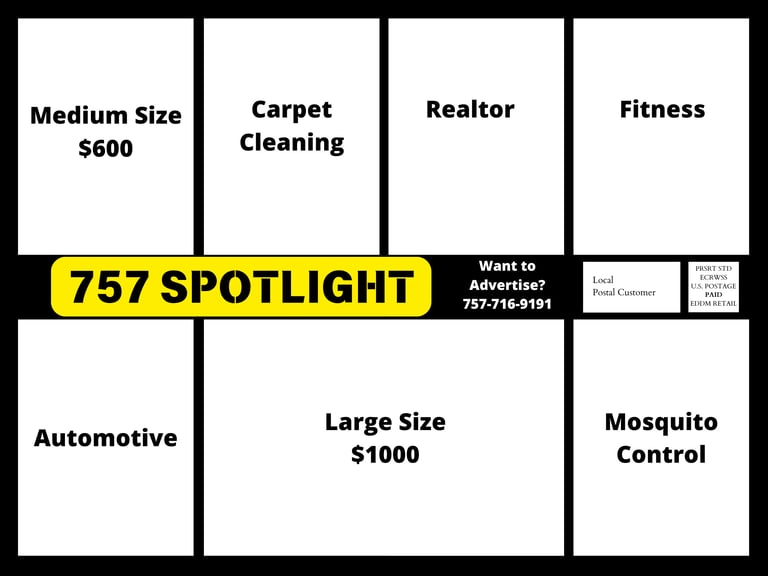 Get noticed! Join this huge postcard mailed to roughly 10,000 Tidewater residents.