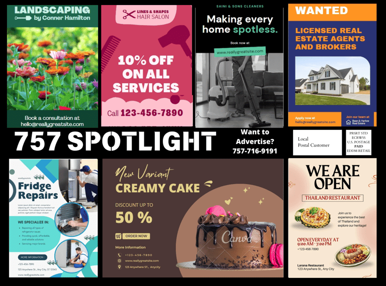 Exciting news! If you are a local business in the 757 area, you now have the opportunity to be a part of a huge 9"x12" postcard going directly to the residents of this area. By teaming up with local non-competing businesses, marketing is made possible for a ridiculously low cost. Let’s go!